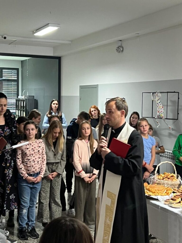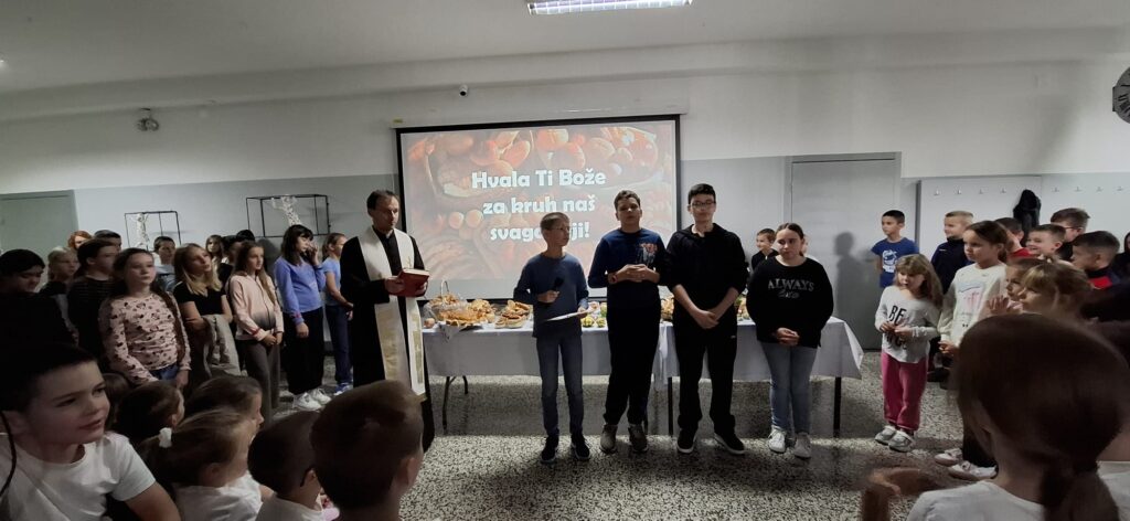 Obilježavanje je uveličao župnik Željko Šimić, koji je tumačenjem poruke iz Poslanice Kološanima podsjetio na važnost zahvalnosti i zajedništva. Nakon molitve vjernika i Očenaša, uslijedio je blagoslov kruha i plodova zemlje koje su učenici i roditelji s ljubavlju pripremili.
