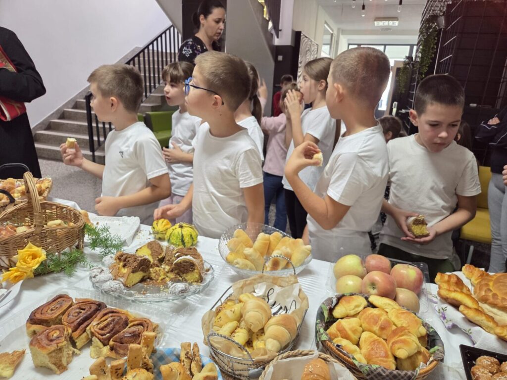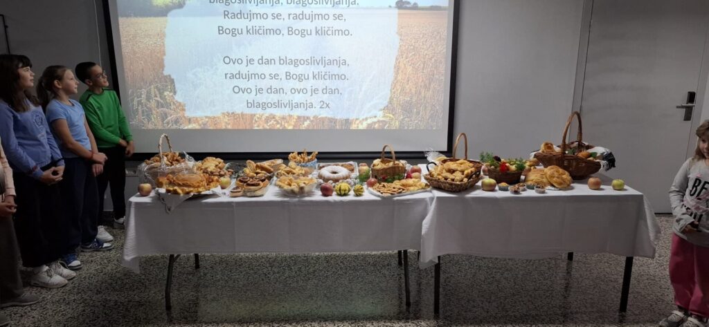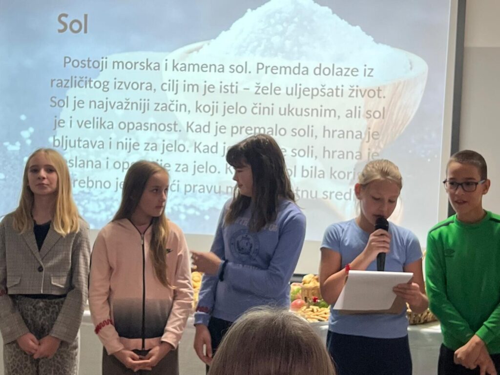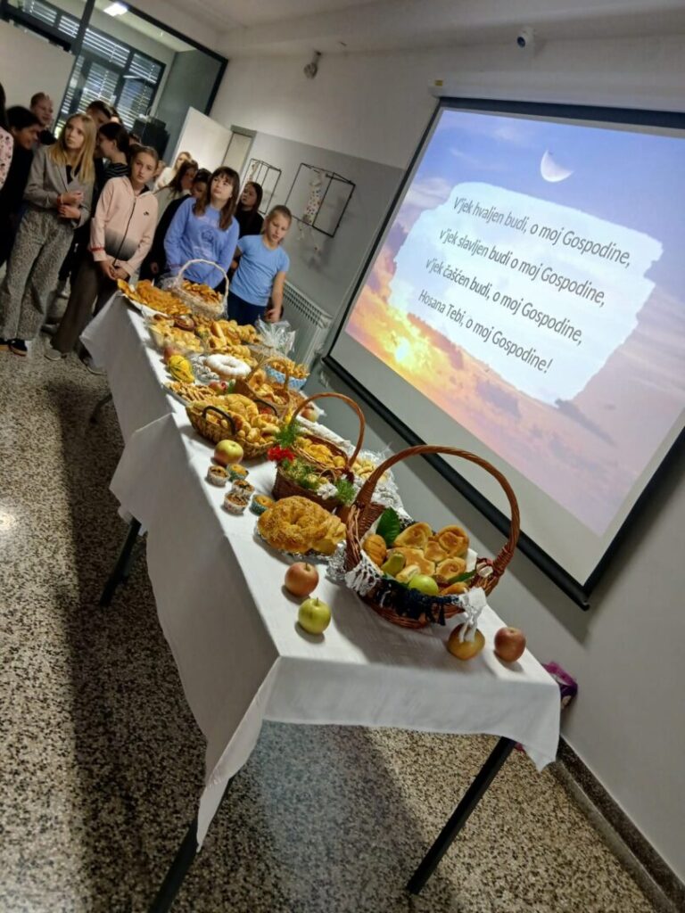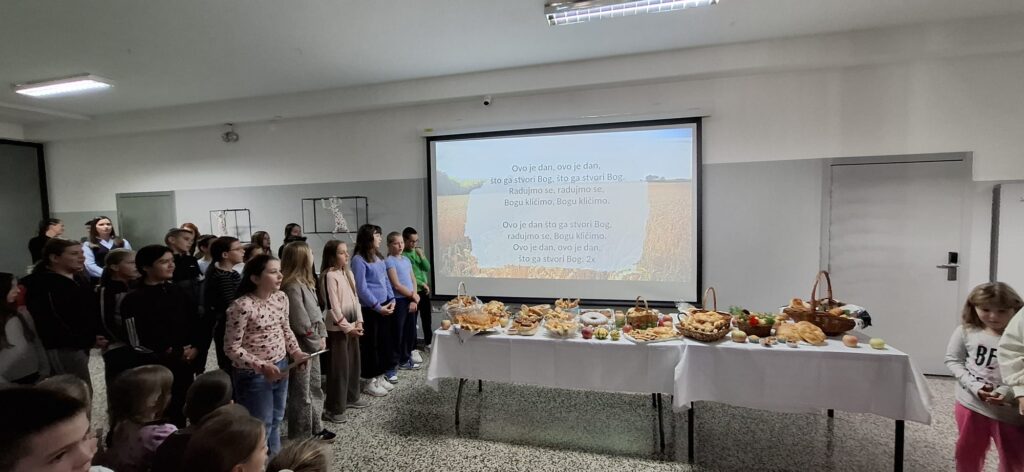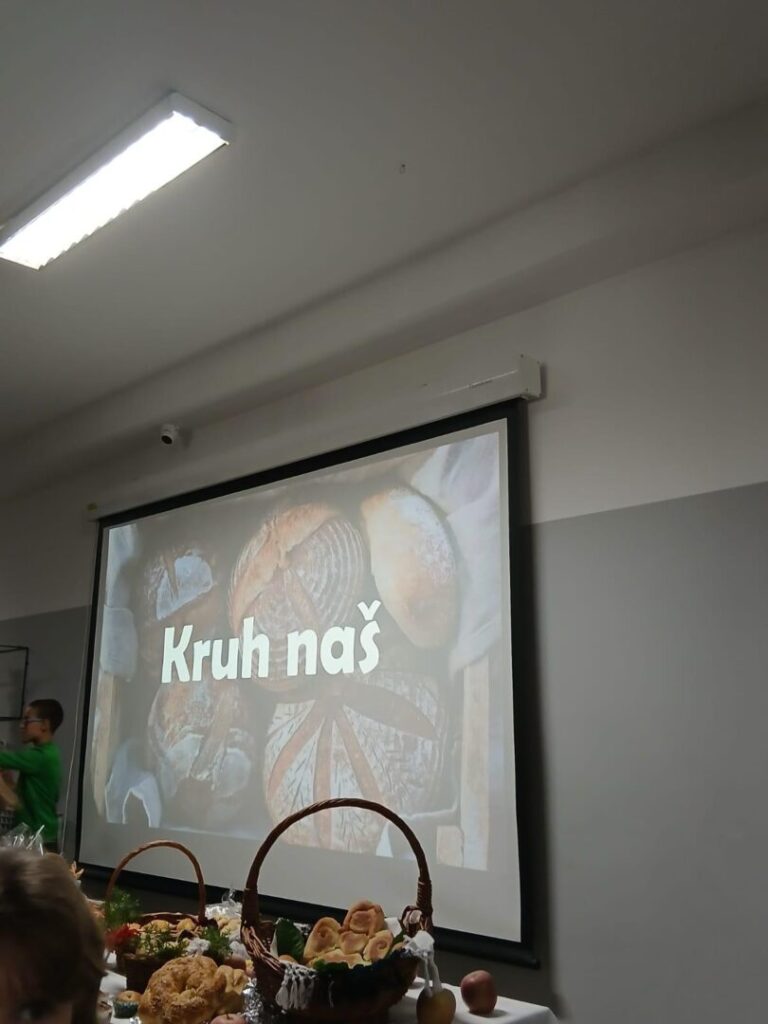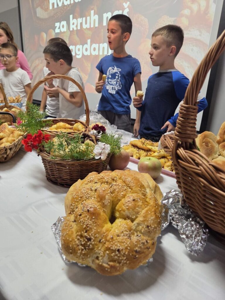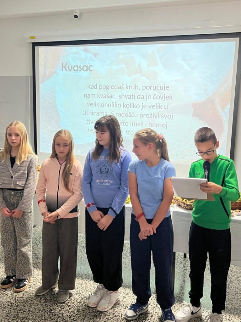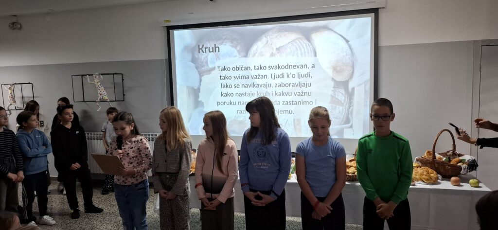 Program je započeo i završio prigodnom pjesmom, a učenici Istraživačke skupine predstavili su zanimljivu prezentaciju o sastojcima kruha i simboličnim porukama koje oni nose.