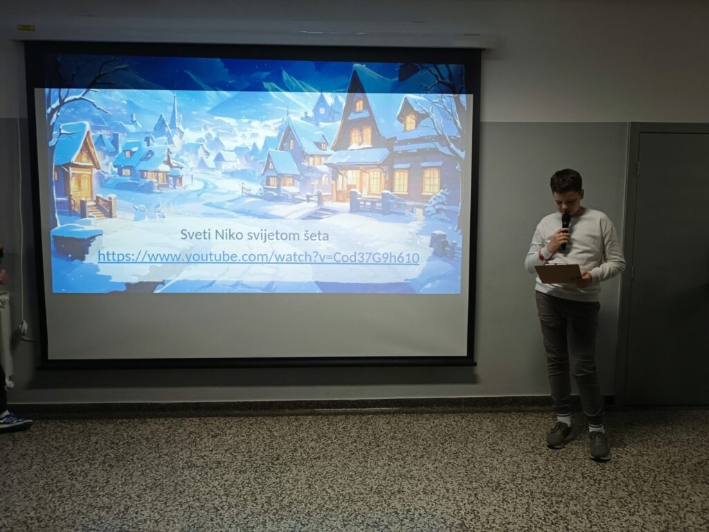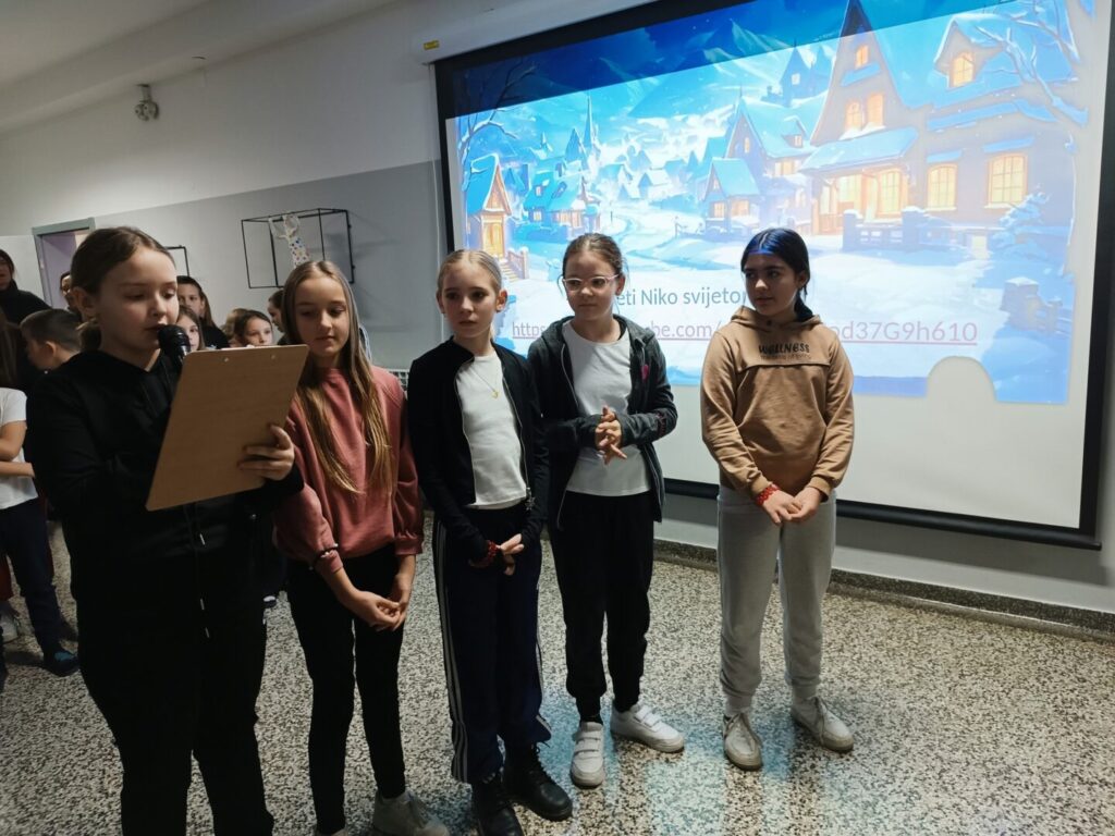 Dolazak uvijek dragog gosta prethodio je veseli i razigrani program koji su pripremili učenici B1 aktivnosti Istraživači. Program je bio ispunjen recitacijama, igrokazima i prigodnim pjesmama koje su stvorile blagdanski ugođaj.