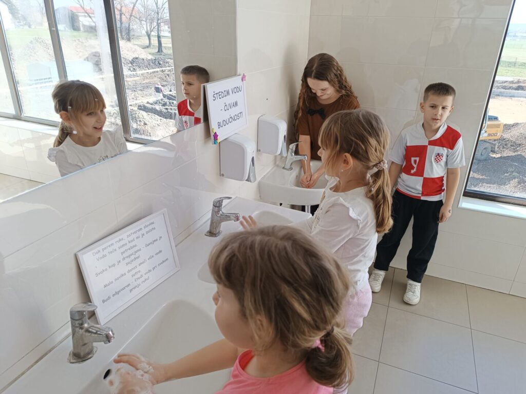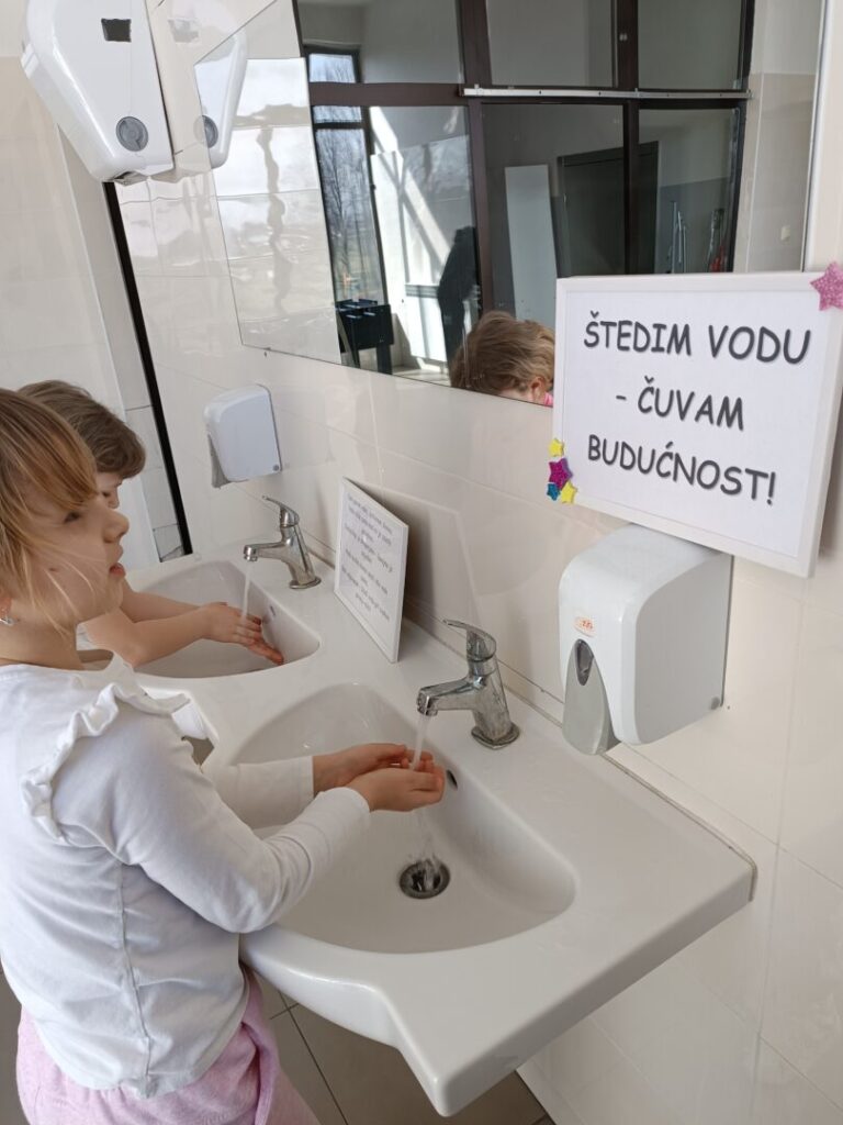Učenici 1. razreda, zajedno sa svojom učiteljicom Irenom Vladisavljević, provode aktivnosti Eko patrole. Tijekom obilaska škole podsjetili su učenike i djelatnike koliko je važno štedjeti vodu i električnu energiju.