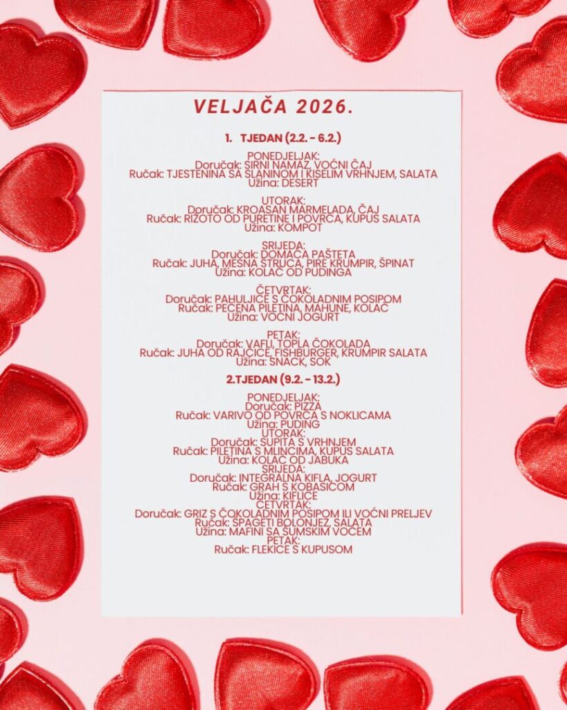 Jelovnik za mjesec veljaču 2026.