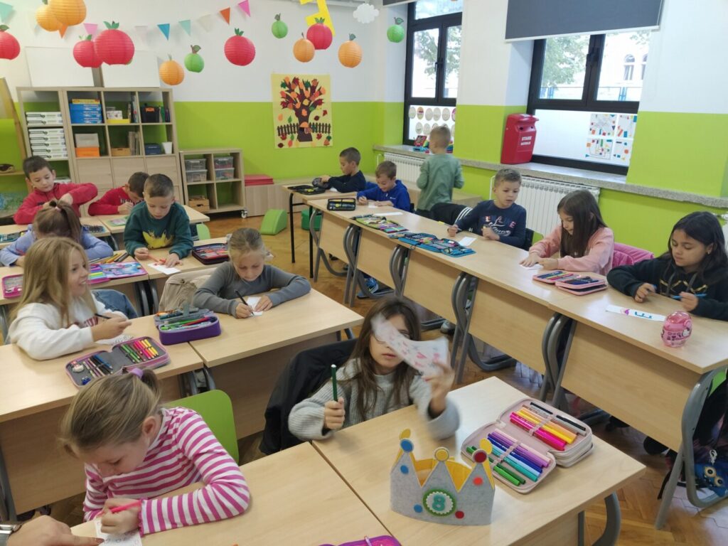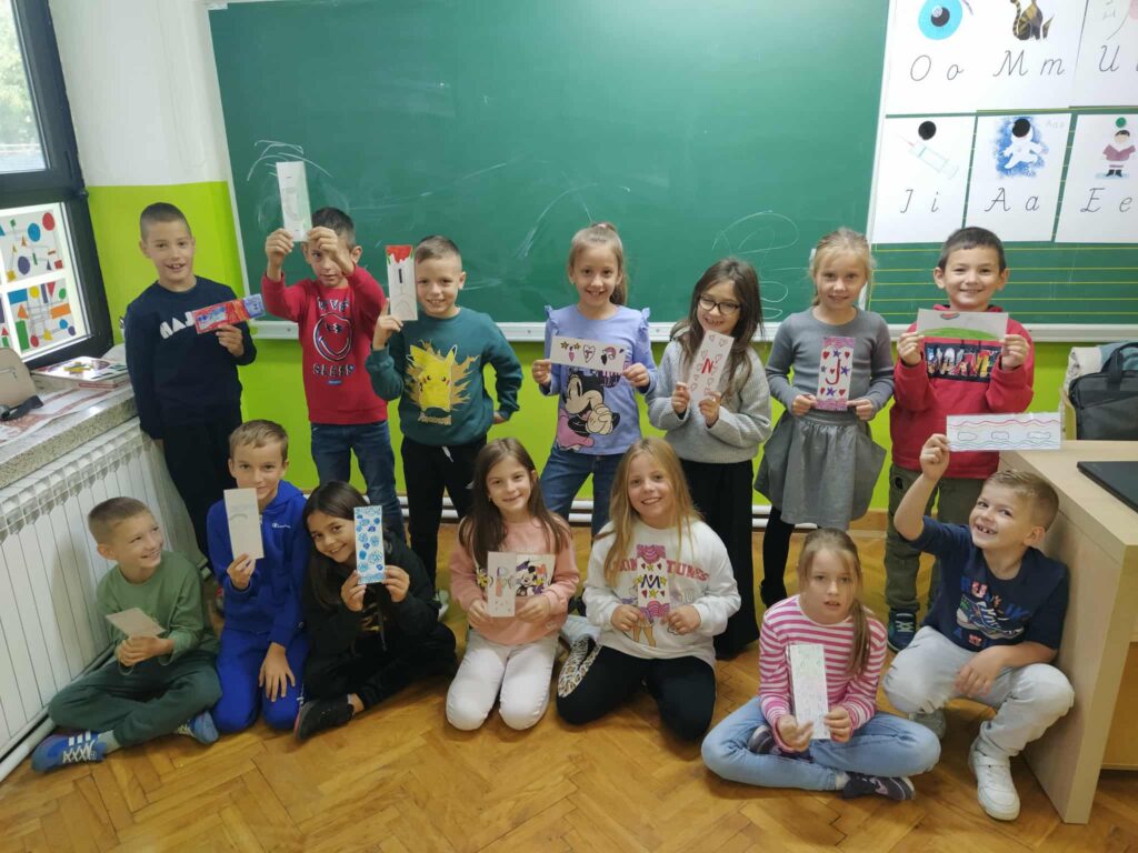 Učenici su razgledali knjižnicu, razgovarali o pravilima ponašanja i važnosti brige o knjigama te izradili vlastite knjižne oznake – svoje prve suputnike na ovom uzbudljivom putovanju kroz svijet knjiga.