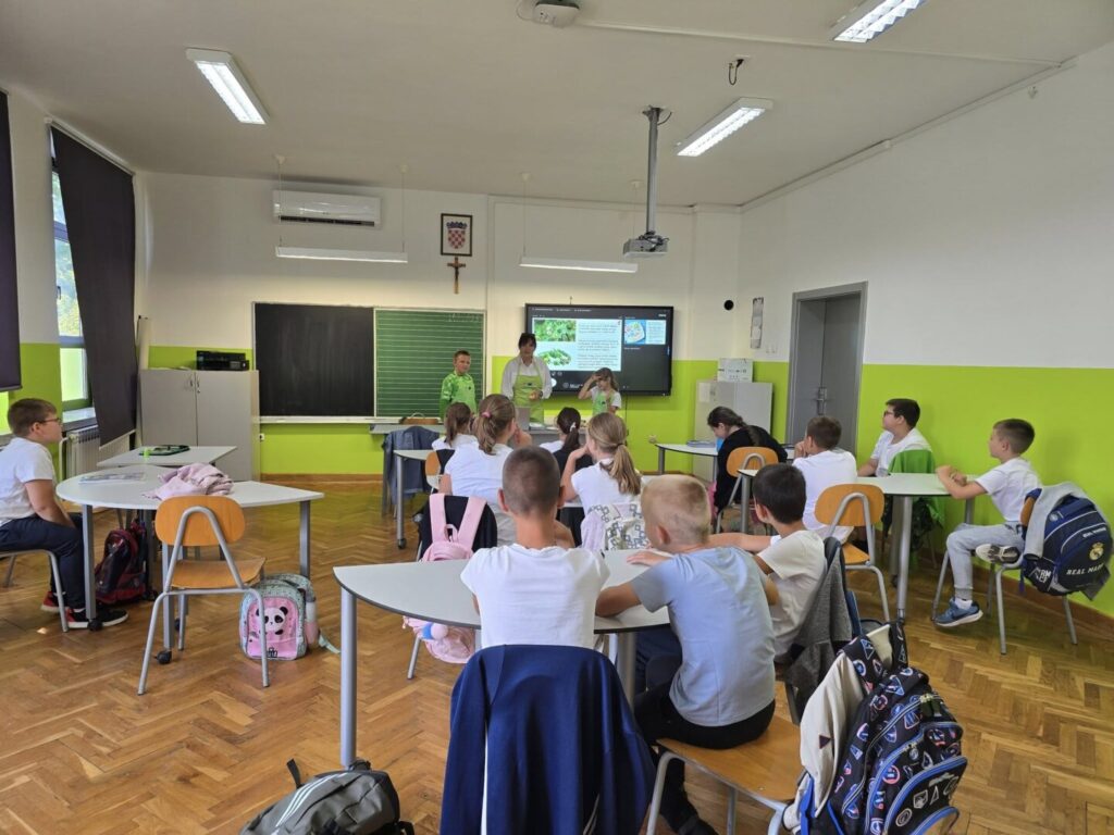 Predavačica Verica Vestić na vrlo zanimljiv način učenicima je približila koliko je važno svakodnevno uživati u zdravim namirnicama – voću, povrću i mliječnim proizvodima.