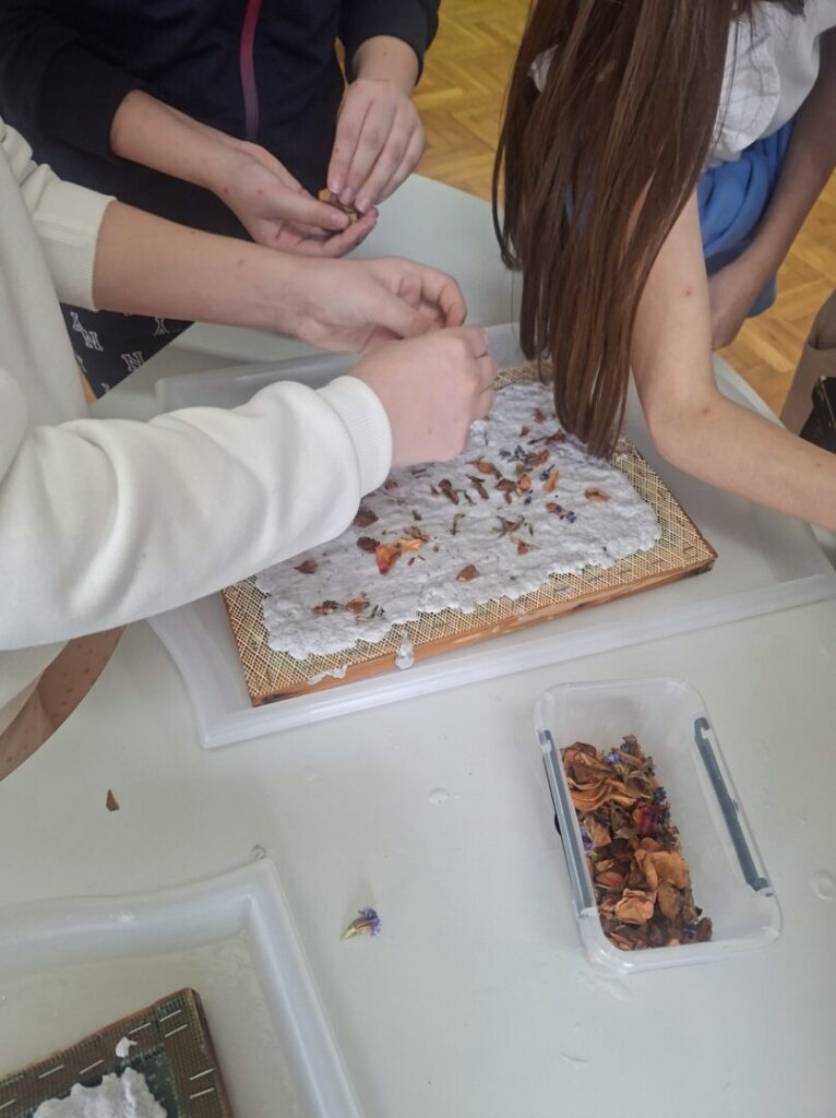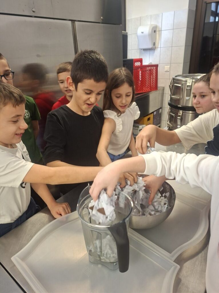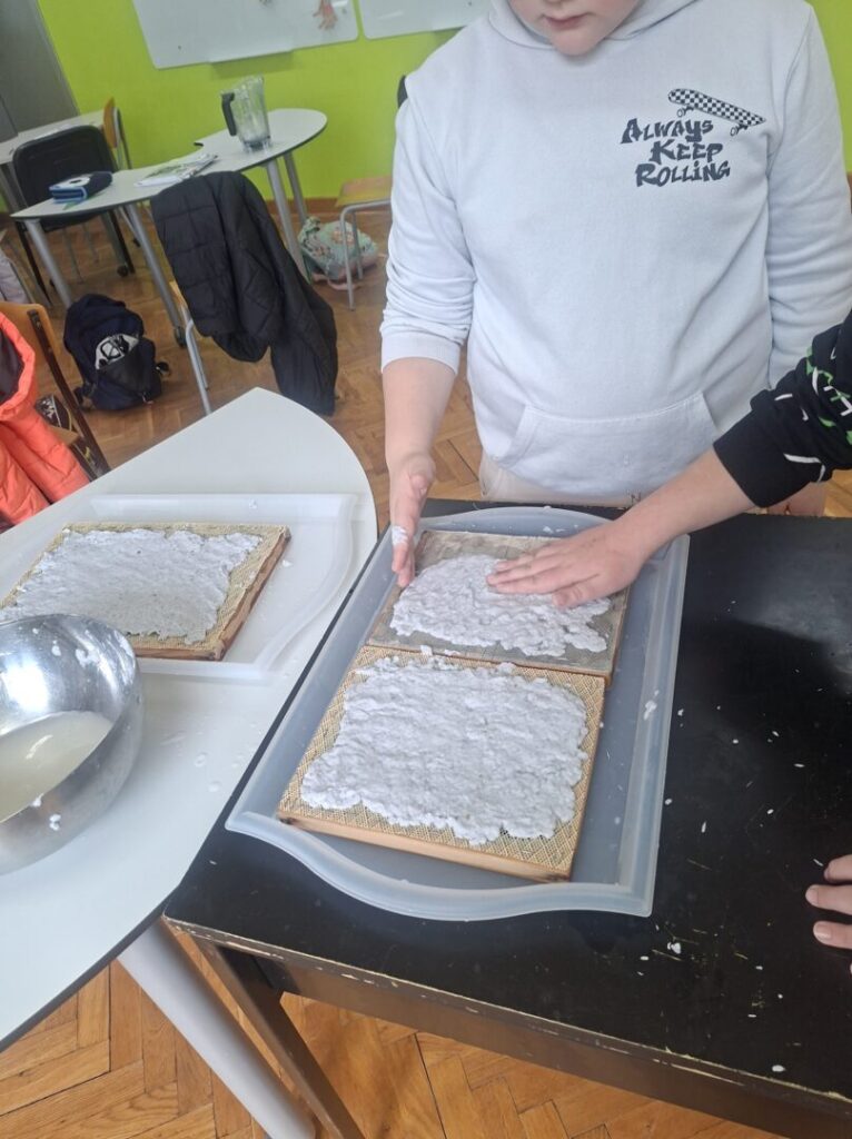 U sklopu radionice učenici su najprije sakupljali stari papir, a zatim su, uz puno truda i veselja, prošli sve korake izrade recikliranog papira: